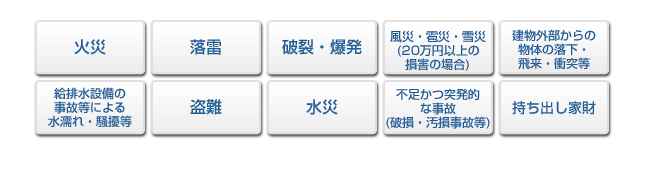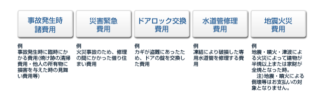 万一、失火や破裂・爆発事故等偶然な事故により借用住宅に損害を与え、大家さんの対し法律上の損害賠償責任を負われたとき、その損害賠償金をお支払いいたします。